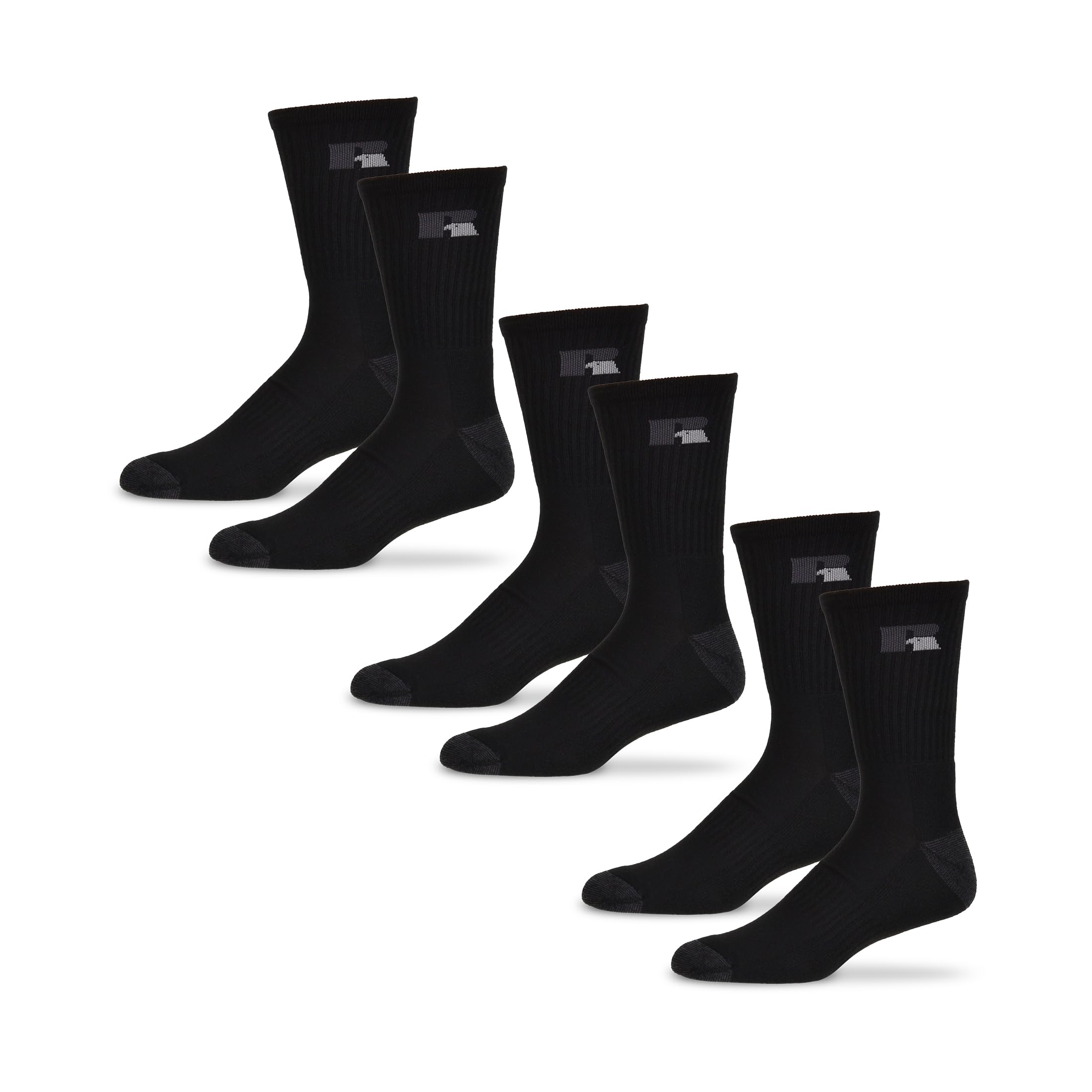 Russell Athletic Crew Socks, 3-Pack – Moisture-Wicking, Cushioned, Arch Support, Reinforced Heel & Toe