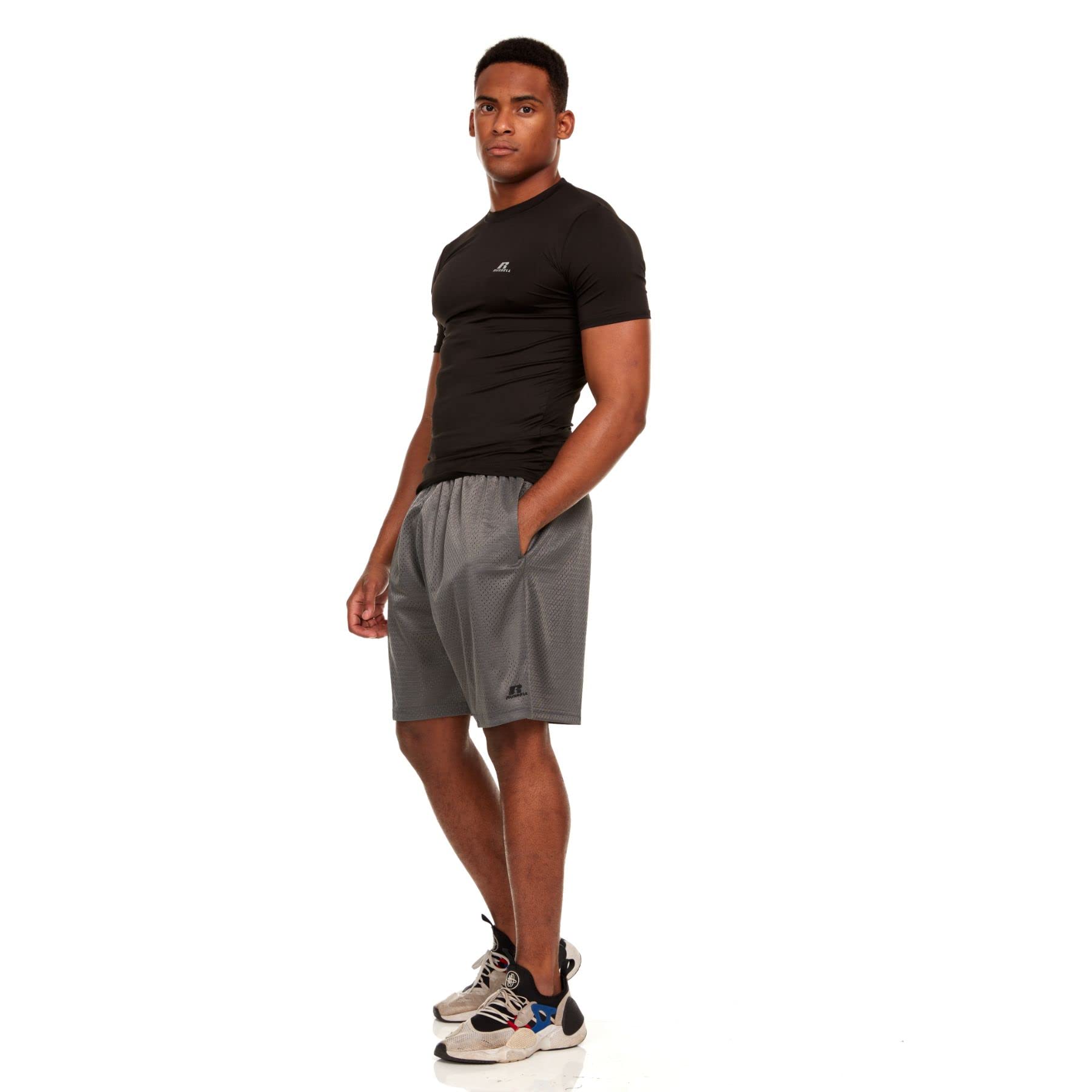 - LET YOUR SKIN BREATHE: Men's compression shirts from Russell Athletic pull sweat and moisture away from the body and allow air to circulate so you feel cool and fresh regardless of the season and the intensity of your regime.